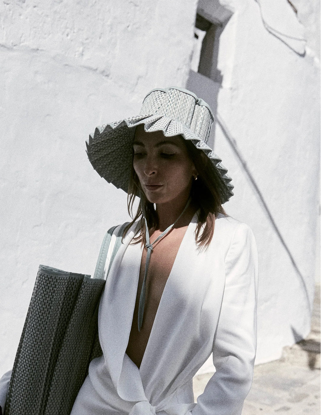 From top left: Eres Swimwear, Matteau pants and tank, Gabriele Franzten carry-all, Lorna Murray Hat.